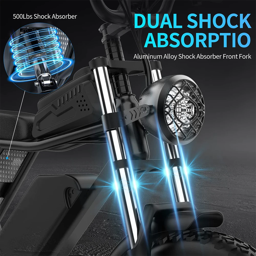 【Ideal para desplazamientos diarios】- La bicicleta eléctrica K20MINI tiene neumáticos que absorben los golpes de 20″, horquilla de suspensión delantera y trasera, pantalla LCD de 5 niveles, asiento deportivo ergonómico, frenos de disco delanteros y traseros y faros LED ultrabrillantes.Con estas características, es perfecto para los desplazamientos diarios, conquistar cualquier terreno y transportar una carga máxima de 300 libras.Adecuado para ciclistas de 5,4 a 6,4 pies de altura.