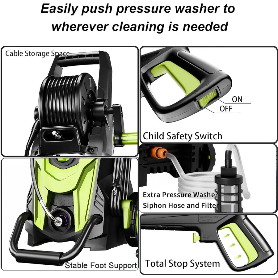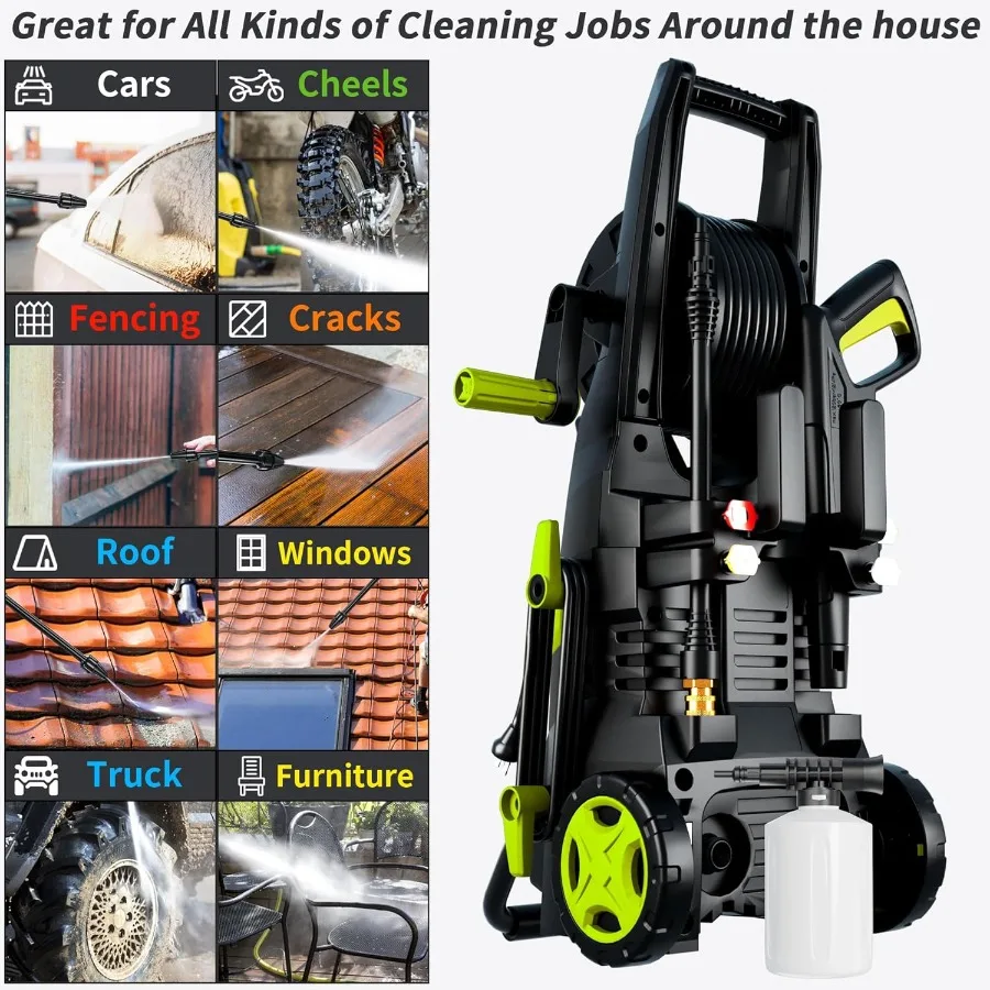 Lavadora de alta presión mejorada 2025 4500PSI con 4 boquillas de conexión rápida, manguera de entrada y cañón de espuma filtrante para una limpieza eficiente